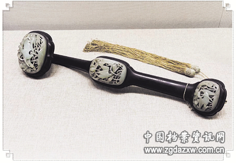 用于赏赐的玉如意,还会有专人负责保管。当时,内廷玉如意的保管者是内务府广储司银库的刘秉忠。乾隆五十三年(1788)二月二十日,乾隆帝正在外巡视,当地官员进献嵌玉三块紫檀木拉道填金如意等,均随双珊瑚珠回头穗。随后,乾隆帝就令太监云布带进京城,“交刘秉忠收贮,备赏用”。