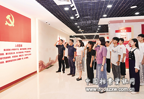 近期,广东省珠海市档案馆紧紧围绕“喜迎二十大·档案颂辉煌”主题,联合香洲区档案馆和拱北海关推出了“创新平安幸福美丽香洲之路”和“档案颂辉煌·百年拱关成长记”2个专题档案展。专题展通过档案文献全面生动地展现了香洲区、拱北海关的发展历程,反映了珠海经济社会发展取得的成就,引导广大党员赓续红色血脉,共建美好城市。图为前来参观的党员正在重温入党誓词。