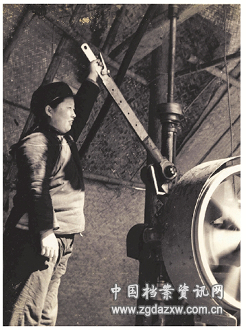 20世纪50年代,钻探队女队员正在操纵钻探机。