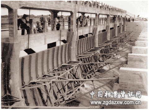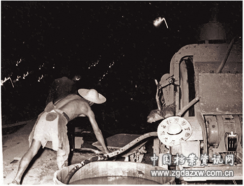 20世纪50年代,工人们为了争取在汛期前完工,日夜奋战。