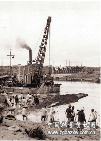20世纪50年代,工人们将疏浚出的泥沙运走。