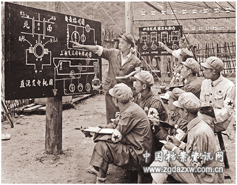 20世纪50年代,支援苏北灌溉总渠建设的中国人民解放军正在工地上学习发电机原理。