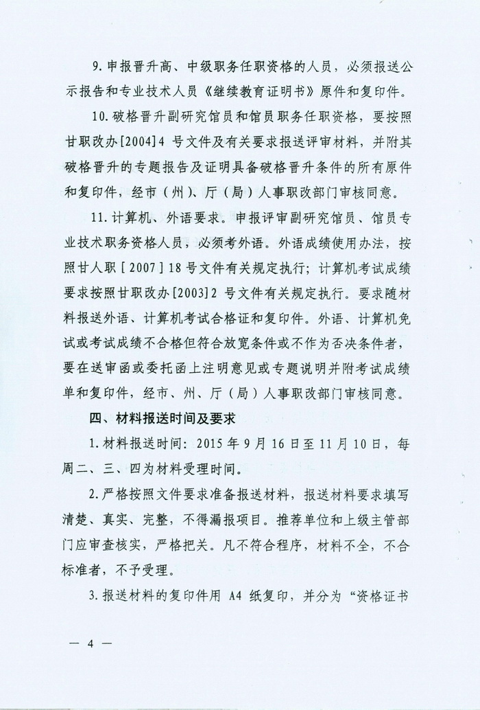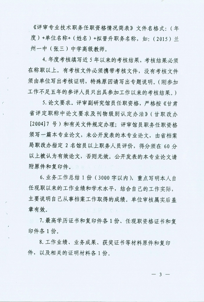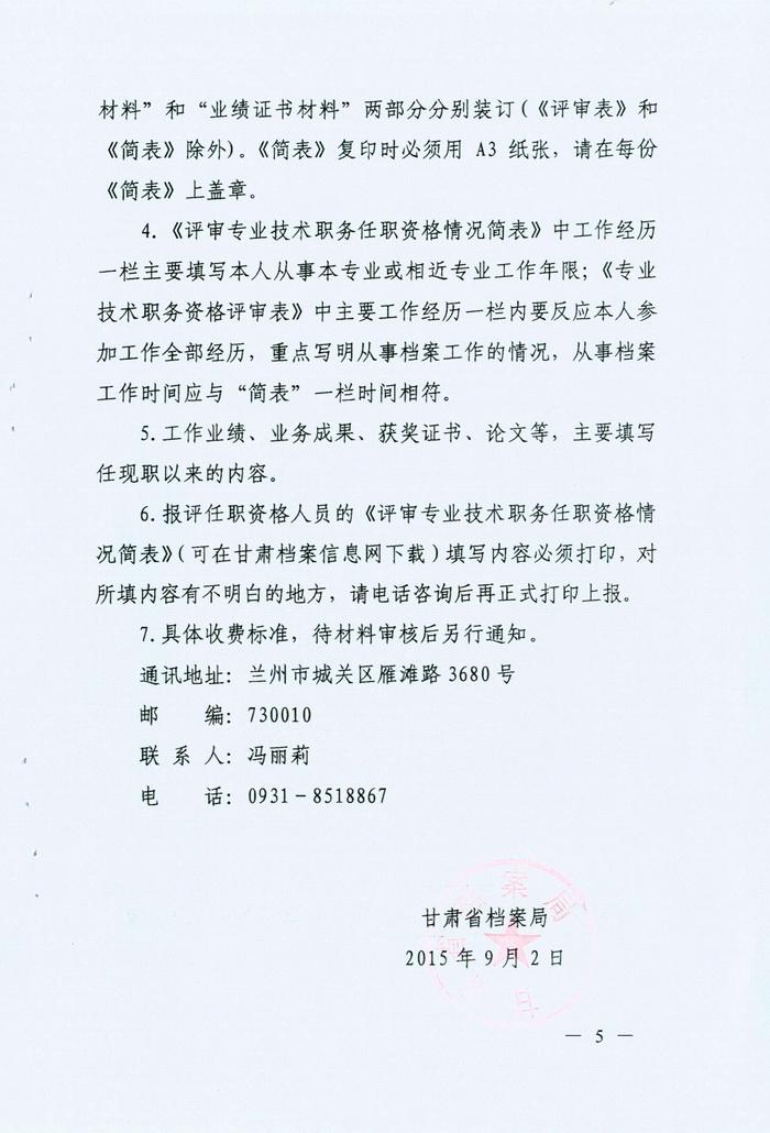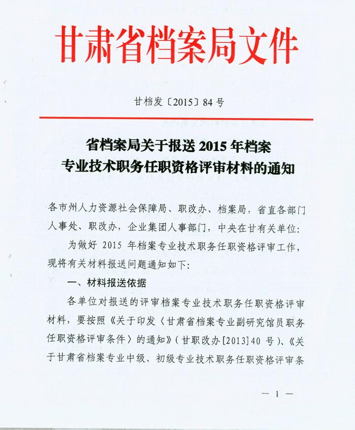 省档案局关于报送2015年档案专业技术职务任职资格评审材料的通知